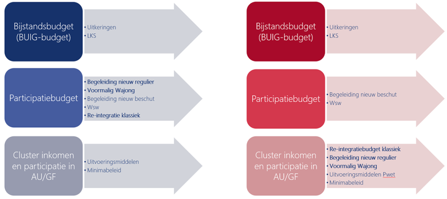 De middelen voor uitvoering Participatiewet, minimabeleid, klassieke re-integratie en participatie nieuwe doelgroepen zijn vanaf 2023 niet (meer) apart zichtbaar. Met name gemeenten en uitvoeringsorganisaties die de bekostiging willen (blijven) baseren op de rijksfinanciering, willen weten hoe deze fictieve budgetten ook in de toekomst berekend kunnen blijven worden.