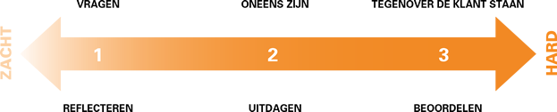 In deze stap verken je samen met de klant zijn motivatie. Als de klant antwoord heeft gevonden op de vraag wat hij wil, is de eerste stap gezet.